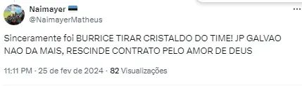 Na web, os torcedores não perdoaram mais uma atuação do jogador e também atribuíram culpa ao treinador por ainda colocar o atacante em campo. Confira algumas publicações abaixo (SIC).