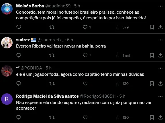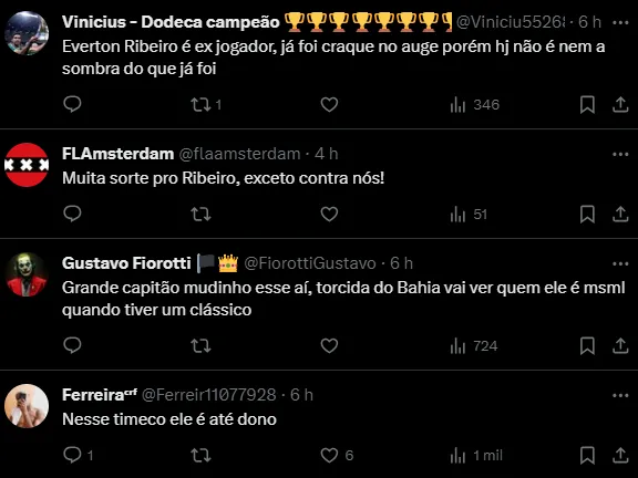 A grande surpresa foi justamente por Everton Ribeiro estar com a braçadeira, além de usar o número 10. Parte dos flamenguistas comentam que esse não é melhor nome para ser capitão.