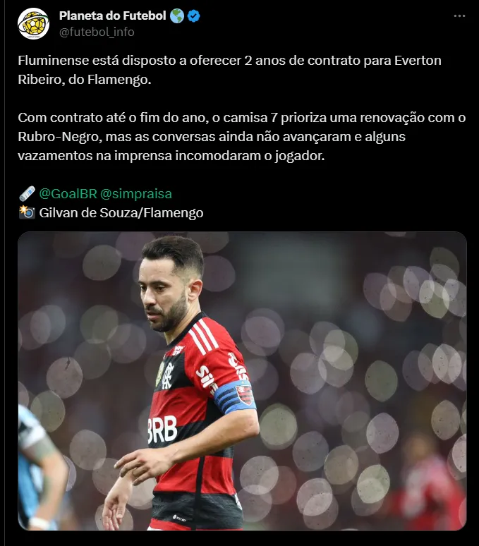 De acordo com as informações publicadas pela jornalista Raisa Simplicio, do portal GOAL, o Fluminense tem interesse na contratação do meia-atacante Everton Ribeiro.