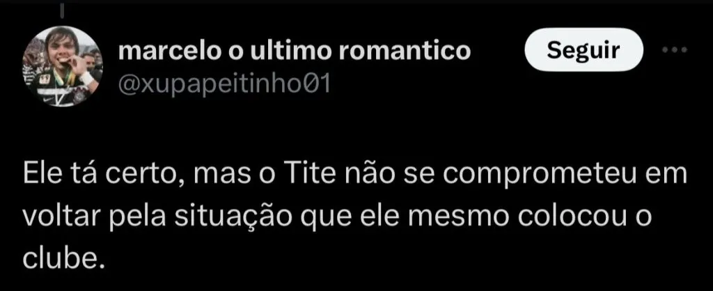 Atual treinador do Flamengo, Tite deixou mágoas na torcida corinthiana após recusar diversos convites do clube, alegando que não iria treinar equipes em 2023, para tirar um ano sabático.