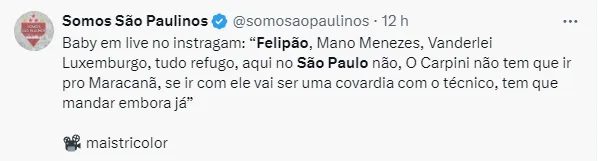 Isso porque, de acordo com o jornalista Fernando Camargo, no programa Bom Dia Tricolor, do Arquibancada Tricolor, Felipão quer assumir o comando do São Paulo.