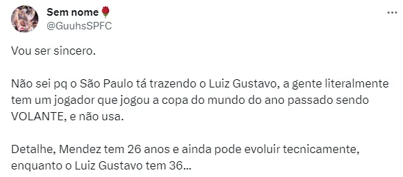 Fato é que a experiência de Luiz Gustavo poderá ajudar e muito o São Paulo na próxima Libertadores. A competição continental será o grande objetivo do time de Dorival.