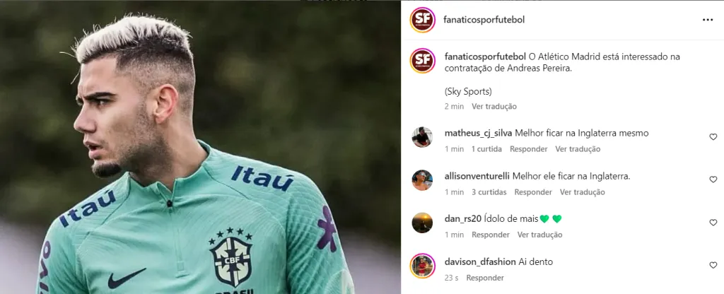 Vivendo grande fase com as cores do Fulham, Andreas Pereira, ex-Flamengo, que recentemente foi convocado para defender a Seleção Brasileira, é alvo de gigantes do futebol europeu para a próxima temporada.