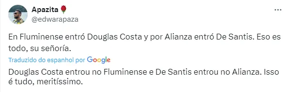 O portal também revelou que o Fluminense vê como normal a situação e que conta com o jogador. Ontem (29), inclusive, Douglas Costa participou da vitória por 3 a 2 sobre o Alianza Lima.