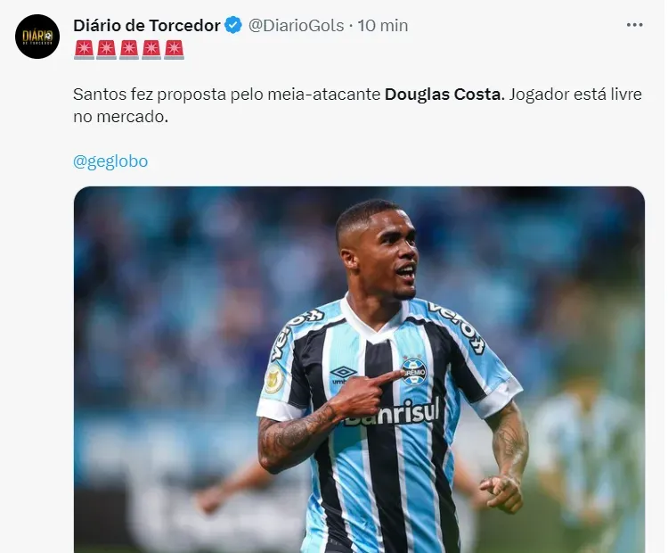 Livre no mercado da bola desde sua passagem pelo futebol dos Estados Unidos, o veterano Douglas Costa, ex-Grêmio, recebeu uma oferta oficial para voltar ao futebol brasileiro em 2024. Um acordo, no entanto, é difícil.