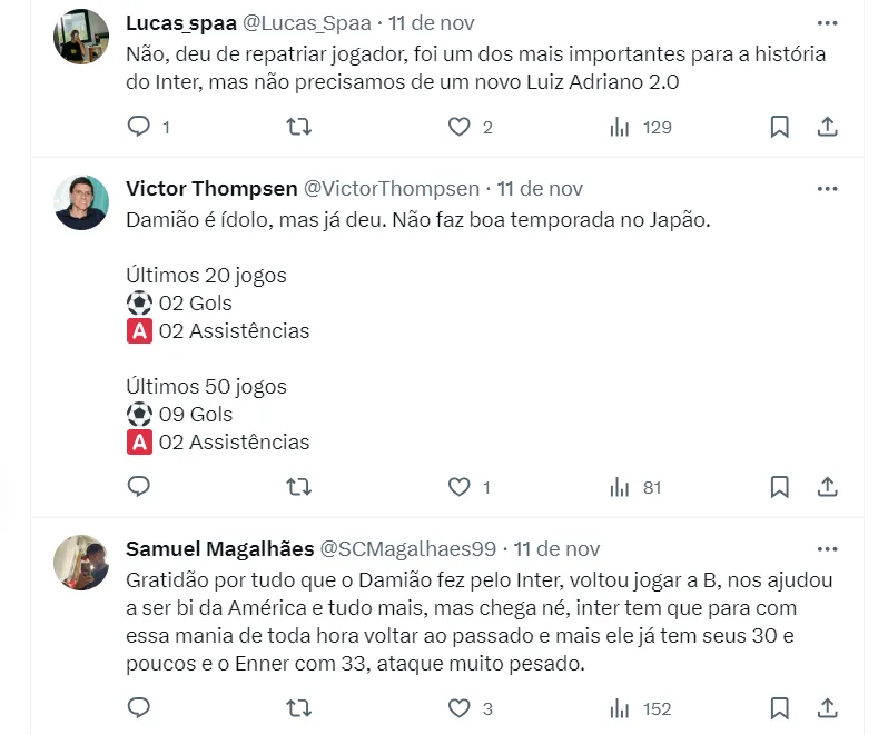 De acordo com o representante de Damião, Vinícius Prates, o camisa 9 recebeu uma consulta de um time brasileiro para voltar ao país em 2024. O contato do emoresário aconteceu para a Revista Colorada.