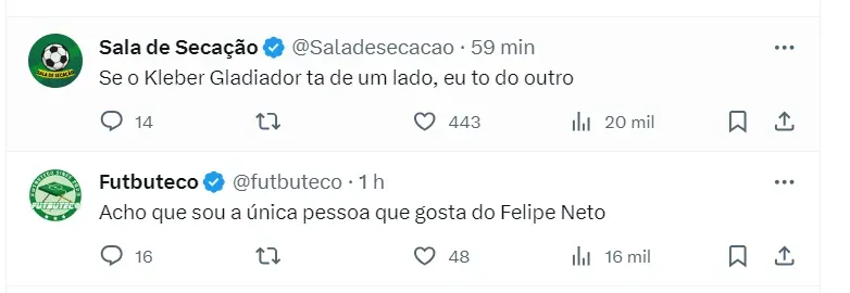 O ex-jogador Kléber Gladiador criticou o torcedor e influenciador Felipe Neto após este ter feito comentários contundentes sobre a CBF. Nas palavras de Kléber, Felipe Neto é um ‘imbecil’.
