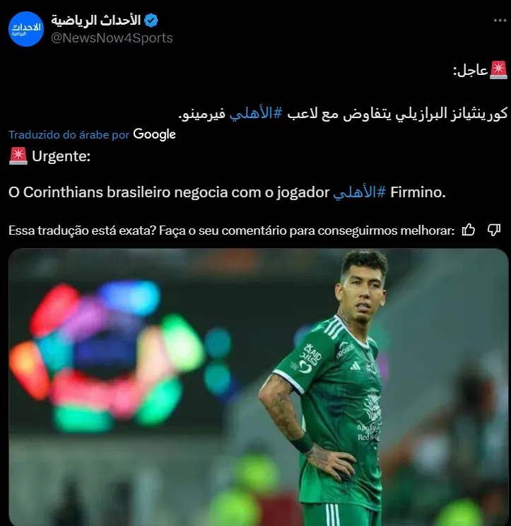 A operação Firmino no Corinthians não será nada fácil. O jogador tem um grande salário no futebol saudita e contrato em vigor por mais uma temporada. Um acordo dependeria da vontade do atleta em voltar ao país.