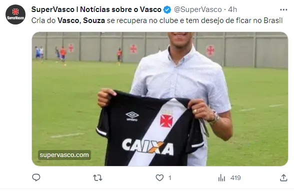 Com seu contrato se estendendo até o final de 2023, o meio-campista expressou o desejo de retornar ao cenário do futebol brasileiro. Atualmente, Souza está em processo de recuperação no Vasco, o que fortalece os indícios de um possível retorno ao clube.