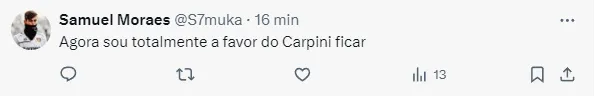 Enquanto isso, o técnico segue sem clube e Carpini segue no Tricolor. No futebol brasileiro, Mano Menezes também soma passagens por equipes como Internacional, Bahia, Flamengo e Grêmio.