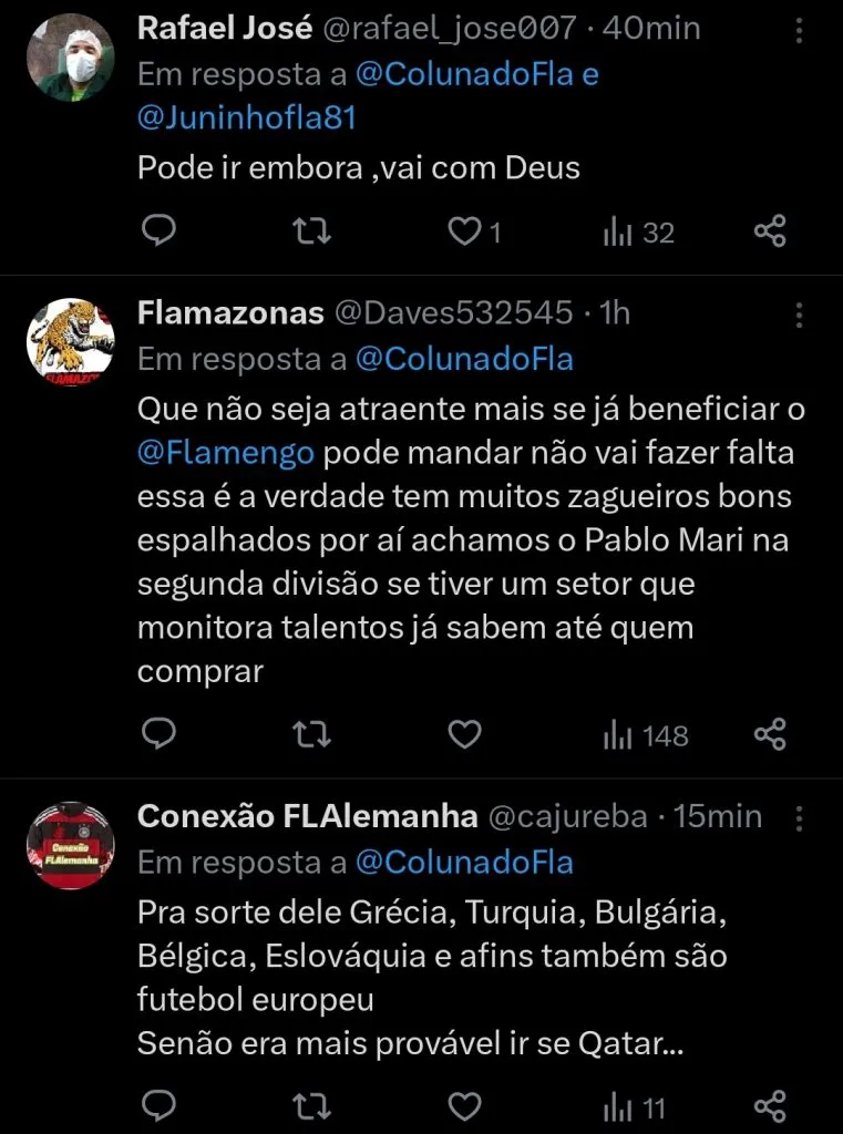 De acordo com apuração do portal Globo Esporte, o zagueiro deseja se transferir para o futebol europeu na próxima janela e no momento, não tem planos para renovar com o Mengão.
