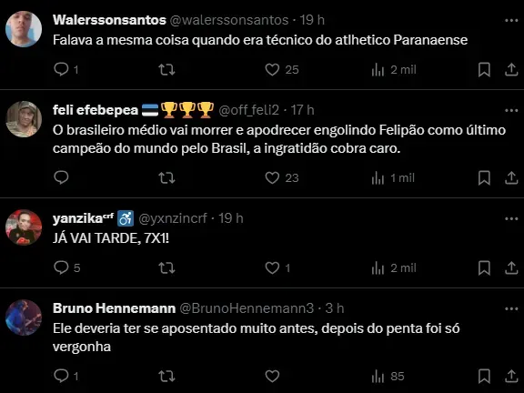 Grêmio, Goiás, Criciúma, Palmeiras, Cruzeiro, Athletico Paranaense e Atlético Mineiro são os outros times brasileiros presentes no currículo do veterano de 75 anos.