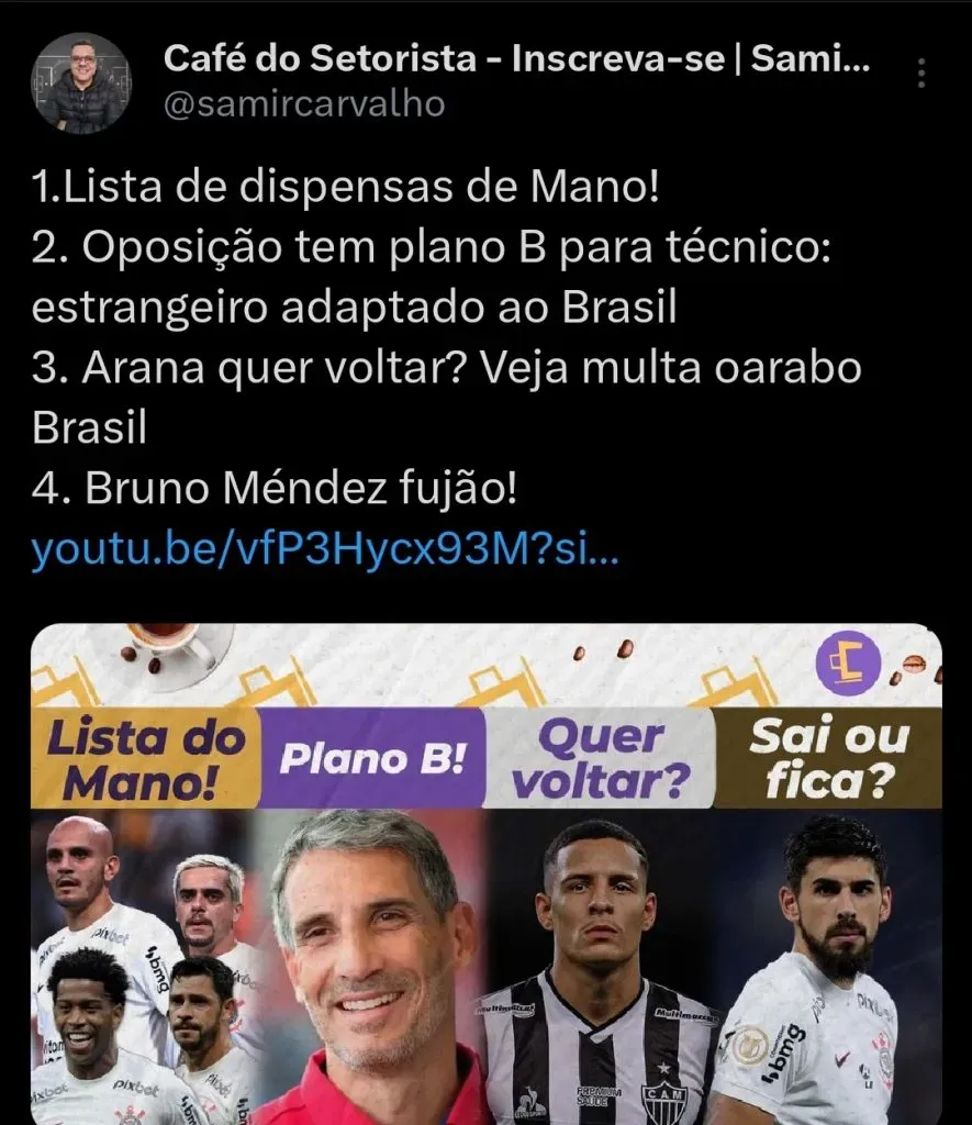 Augusto Melo é um dos favoritos a ganhar a eleição presidencial do clube e deseja um técnico estrangeiro e que conheça o futebol brasileiro, conforme aponta o jornalista Samir Carvalho.