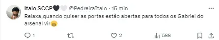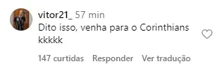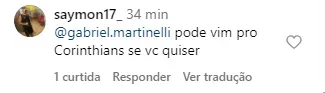 “Martinelli no Corinthians já é realidade”, “Já faz o PIX, Augusto. Bom reserva para o Wesley”, “Dito isso, venha para o Corinthians“, “Tem que trazer o homem”, “Pode vir”, “Venha ser feliz no Corinthians”.