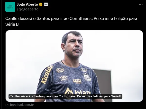 “O nome preferido da diretoria é o de Felipão. Na possibilidade de Carille se transferir para o Corinthians, o nome preferido de Marcelo Teixeira é Luiz Felipe Scolari”, informa o comunicador.