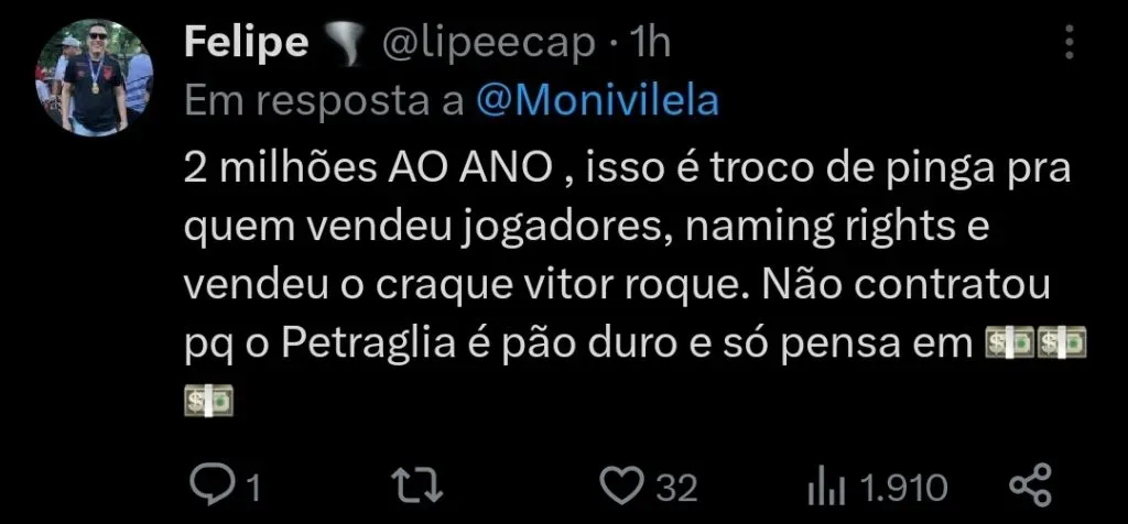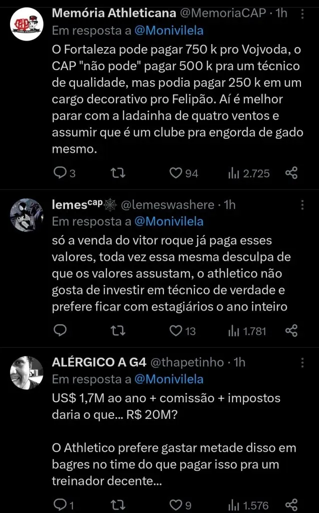 Entretanto, o clube paranaense acabou “esbarrando” nos valores exigidos pelo treinador, que pediu cerca de US$ 1,7 milhão por ano para trabalhar na equipe, algo próximo dos R$ 700 mil mensais.