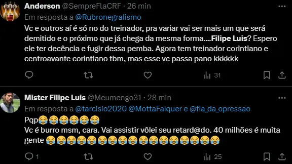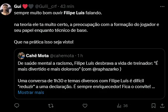 O ex-atacante do Flamengo, Rodrigo Muniz, contou em entrevista ao jornalista Fred Caldeira, da TNT Sports, que Filipe Luís é como se fosse um padrinho dele e acompanha cada passo do garoto fora do Brasil.