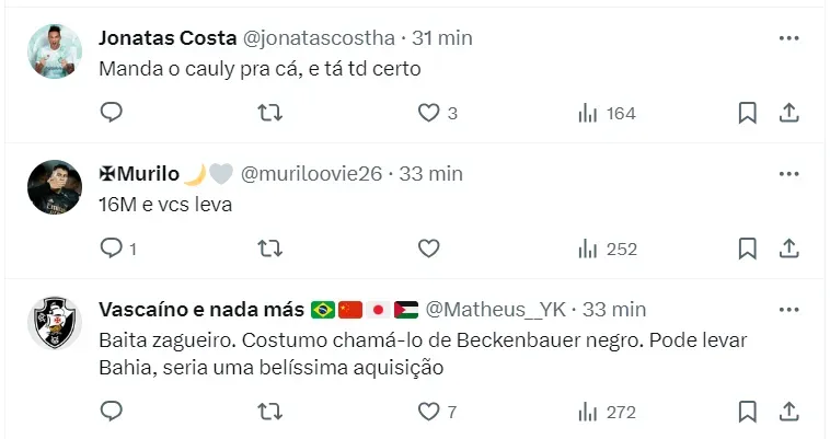 De olho no jogador do Vasco, o Bahia também monitora outros nomes no mercado. Por exemplo, Soteldo, do Santos, é um dos sonhos da diretoria e também do Grupo City.