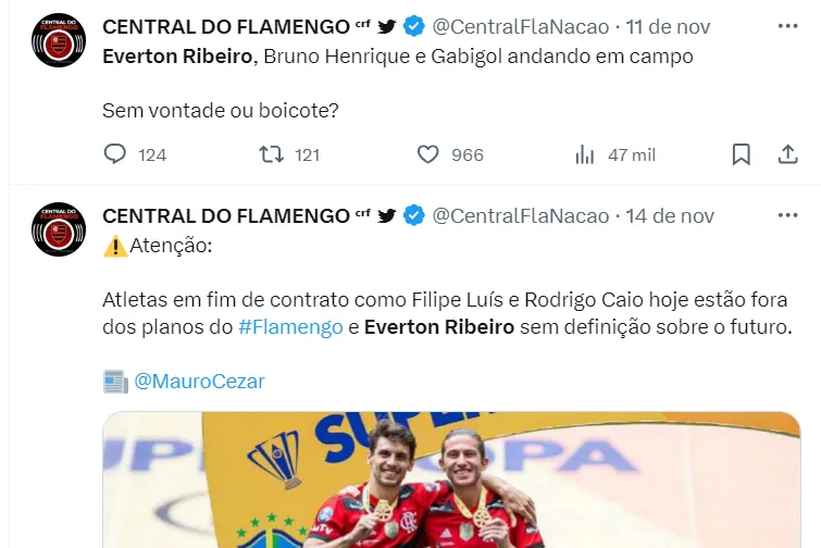 Para o lugar de Everton Ribeiro, o Mengão já está em conversas avançadas para fechar com De La Cruz, o que acaba deixando ainda mais claro que o ciclo do camisa 7 está chegando ao fim.