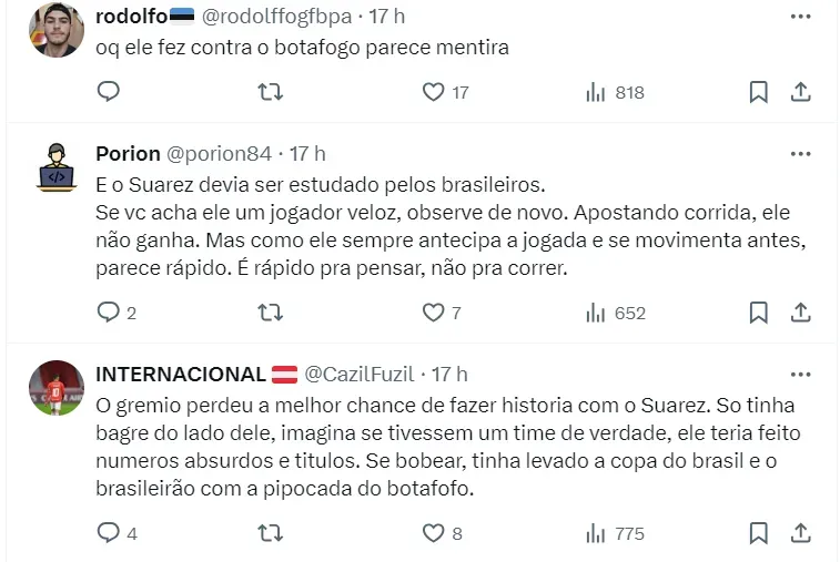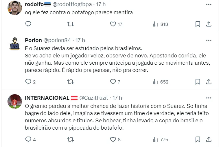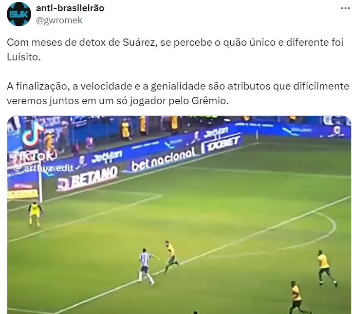 O nome do camisa 9 voltou a ser assunto por parte de torcedores do Grêmio nas redes sociais, que sentem bastante falta esportivamente do grande goleador. Os nomes de Pavón, Soteldo e Diego Costa foi citado.