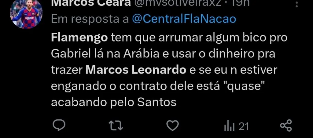 Neste cenário, a ideia é que em janeiro, principalmente em caso de saída de Gabi, o Flamengo avance com uma proposta por Marcos Leonardo.