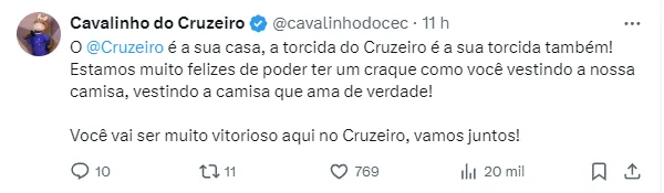 Porém, ainda de acordo com Heverton, o jogador será comprado pelo Cruzeiro após o fim do empréstimo. Uma fonte importante confirmou a informação ao apresentador.