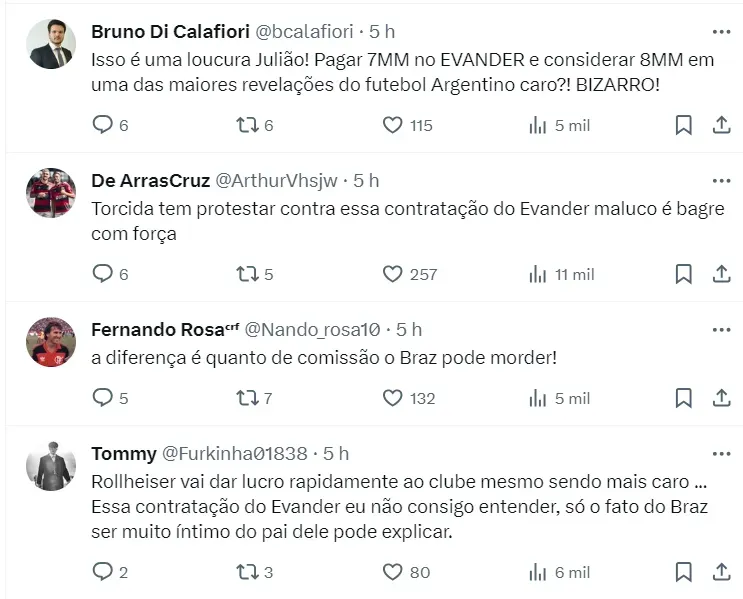 Nas redes sociais, parte da torcida do Flamengo não concordou com a informação da fonte, já que a janela do clube é bastante tímida até o momento, e o atleta rejeitado é de grande nível.