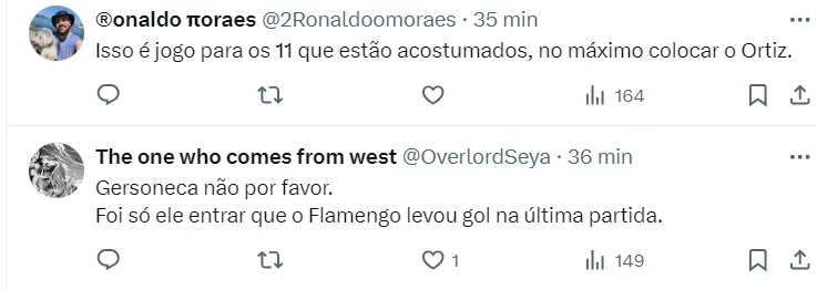 Para o grande jogo contra o Palmeiras, espera-se que o time titular do Flamengo tenha novidades. O treinador do Mengão planeja dar mais minutos em campo para alguns atletas, como o novo contratado, Carlinhos, além de Gerson, Léo Ortiz e Bruno Henrique, segundo informações de Pablo Raphael.