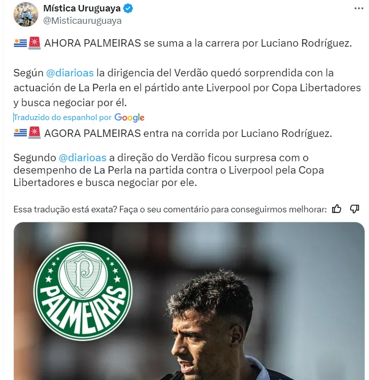 Luciano Rodríguez, do Liverpool, chamou atenção do Palmeiras após o confronto no Brasil e entrou na mira do Verdão, conforme informações do jornal Diário AS, da Espanha.