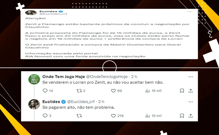 Isso porque, de acordo com a fonte, os clubes estão perto de fechar um acordo por 18 milhões de euros. Além disso, o Zenit ainda terá a preferência de compra do jovem Lorran.