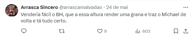 Você aprova o Flamengo vender BH para trazer Michael?