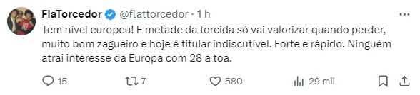 Fabrizio Romano ainda destacou que o Flamengo pode aceitar fazer negócio caso receba propostas de 12 a 15 milhões de euros. Recentemente, o Olympique de Marseille apareceu ligado.