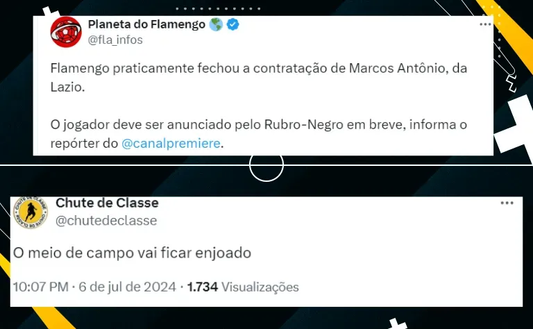 O meio-campista Marcos Antônio é o mais novo reforço do Flamengo, garante o jornalista Jorge Nicola. O atleta é aguardado no Rio de Janeiro na próxima semana, onde passará por exames médicos.