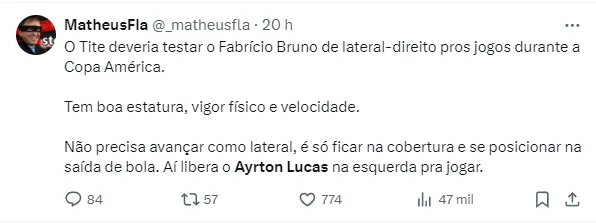 Ainda de acordo com a fonte, a ideia é se preparar para uma possível venda de Ayrton Lucas. O jogador vem recebendo diversas sondagens do exterior e pode sair no meio do ano.