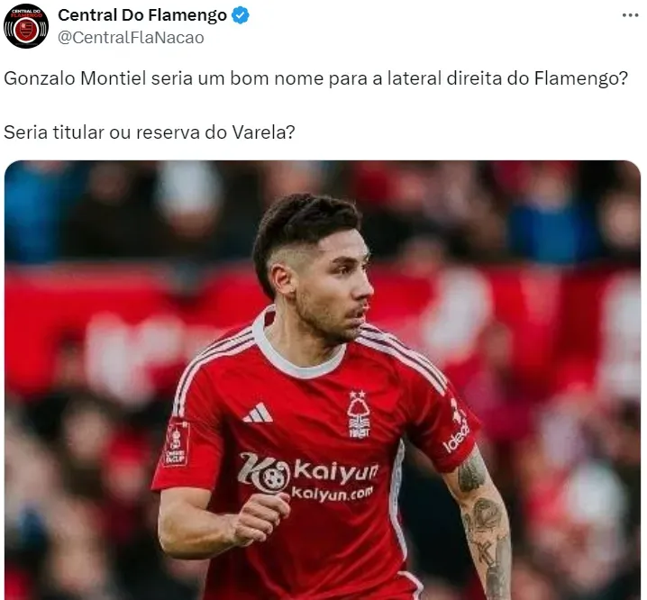 No lado direito, Gonzalo Montiel, que pertence ao Sevilla e está emprestado ao Forest, da Inglaterra, é alvo e já houve sondagens inicias para entender mais sobre o atleta. O que há, no momento, é que o time espanhol está aberto a um negócio.