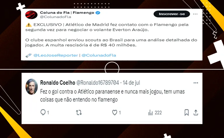 Um deles, é Evertton Araújo. Conforme publicado pelo repórter Leo José, do Coluna do Fla, o Atlético de Madrid está interessado na contratação do meio-campista de 21 anos.
