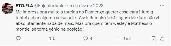Porém, a lista pode não parar por aí. Isso porque, conforme repercutido pelo portal El Crack Deportivo, da Argentina, o Flamengo segue interessado e pode fazer uma nova investida pelo lateral Gonzalo Montiel.