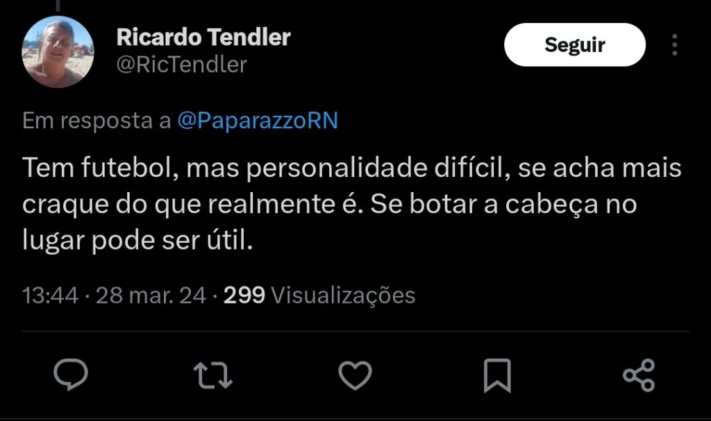 “Ele está fora dos planos, decisão da diretoria. Empresário dele falou comigo, fui ver como está a situação, mas não tem como voltar”, disse o treinador durante a coletiva.