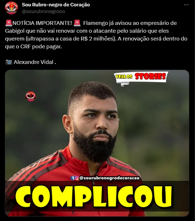 De acordo com as informações publicadas pelo “Sou Rubro-negro de coração”, o Flamengo informou a Gabigol e seus empresários que não está disposto a aumentar o seu salário para renovar o vínculo.