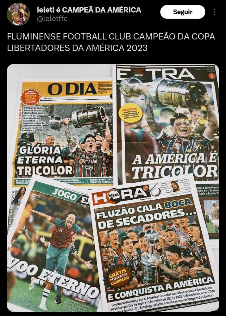 Na tarde do último sábado, as equipes de Fluminense e Boca Juniors se enfrentaram pela grande final da Copa Libertadores da América. Em uma partida muito dramática, o tricolor carioca superou o rival argentino na prorrogação, e conquistou o seu primeiro título internacional.