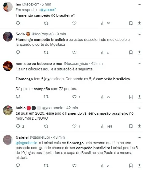 O jornalista destacou que o Flamengo tem uma tabela mais favorável nas últimas rodadas e isso pode colaborar para uma arrancada da equipe. O jogo contra o Red Bull Bragantino foi apontado como chave, sendo visto como o único desafio difícil para o Rubro-Negro.