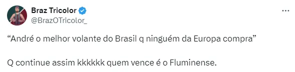 No entanto, enquanto isso, André, que está com 22 anos, segue no Fluminense. O atleta subiu ao time profissional da equipe em 2021, tendo começado a ganhar sequência já na temporada seguinte.