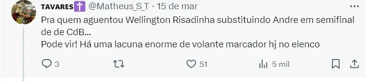 “Não temos interesse. Zero chance (de um acordo acontecer)”, teria dito um dirigente do time carioca em contato com a fonte da matéria.