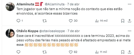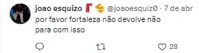 A atitude do jogador foi bastante criticada pela torcida do Fortaleza nas redes sociais.