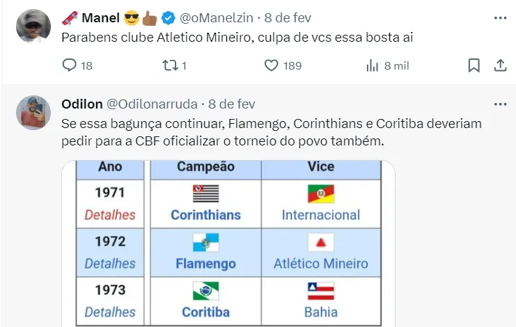 A CBF deveria reconhecer esses times como campeões brasileiros?