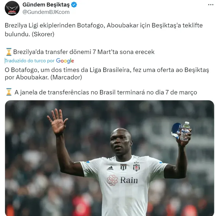 Enquanto isso, surgiu a informação de última hora que o Botafogo teria oficializado uma oferta para contar com o futebol de Aboubakar, segundo informações do portal turco Gunden Besiktas.