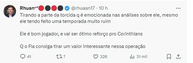 As informações foram publicadas pelo jornalista Venê Casagrande, que ainda revelou que o meio-campista está animado com a ideia de jogar no Timão em 2024.