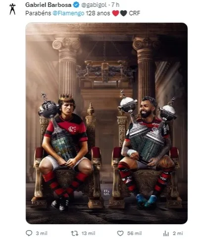 Neste feriado de 15 de novembro, o Flamengo comemora seus 128 anos de fundação, e a celebração ganhou destaque nas redes sociais com uma postagem especial de Gabigol.