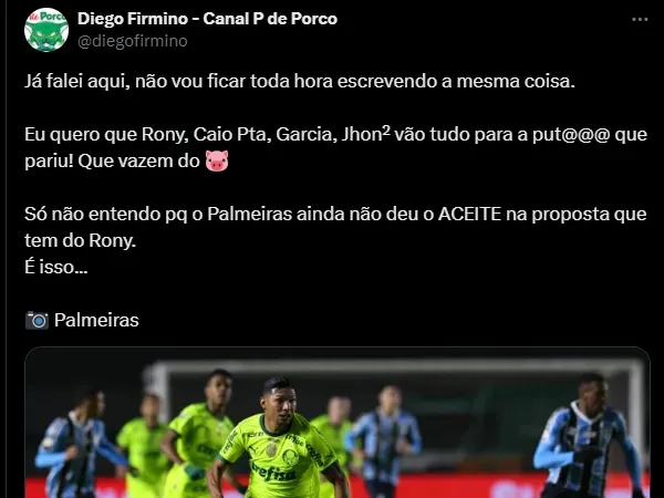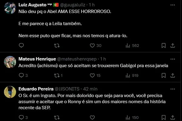 Resta saber quando será a chegada: agora ou em janeiro? Fato é que assim que Gabriel desembarcar na Academia de Futebol, Rony passa a ter dias contados na SEP e é provável que a proposta existente seja aceita.