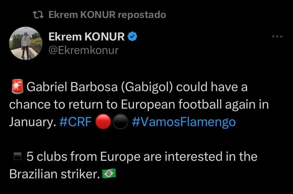 Dias atrás o jornalista Ekrem Konur revelou que diversos clubes europeus monitoram a situação do atacante flamenguista, porém, as equipes não foram reveladas.